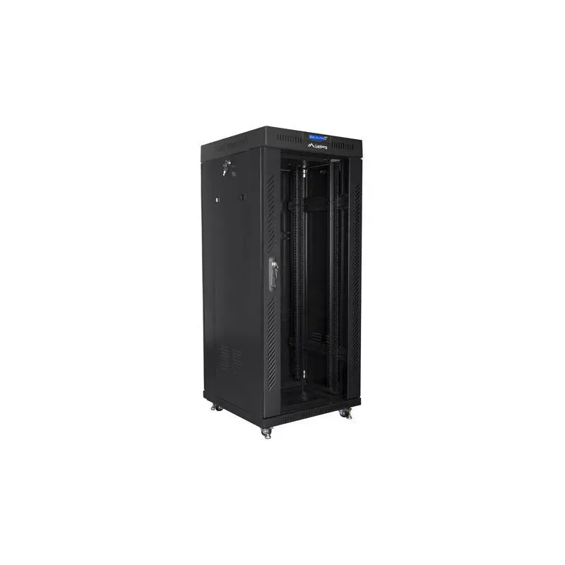 Szafa instalacyjna Rack stojąca 19" 27U 600x600 czarna drzwi szklane LCD to szafa serwerowa rack marki LANBERG. Zapewnia bezpieczne przechowywanie i organizację sprzętu sieciowego.