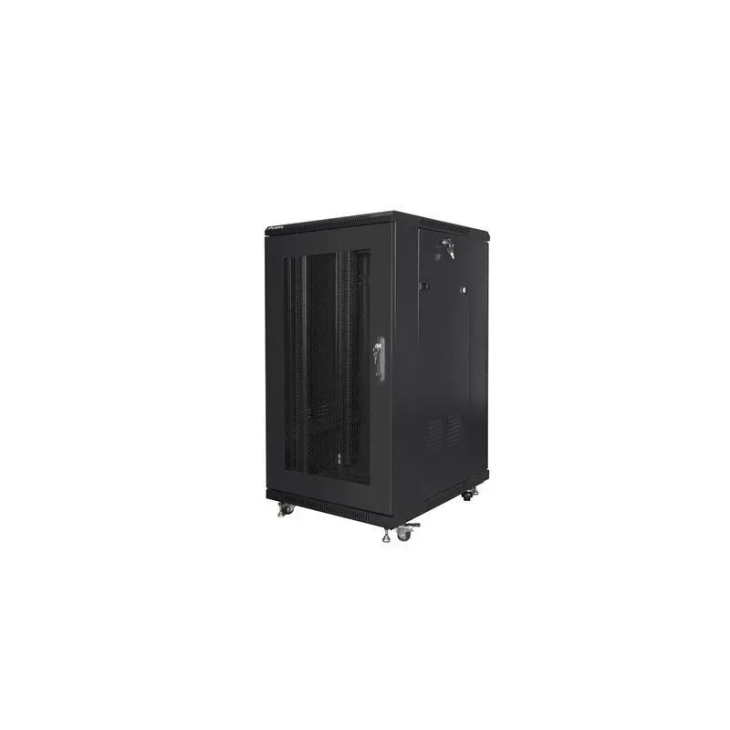 Szafa instalacyjna Rack stojąca 19" 22U 800x800 czarna drzwi perforowane to szafa serwerowa rack marki LANBERG. Zapewnia bezpieczne przechowywanie i organizację sprzętu sieciowego.