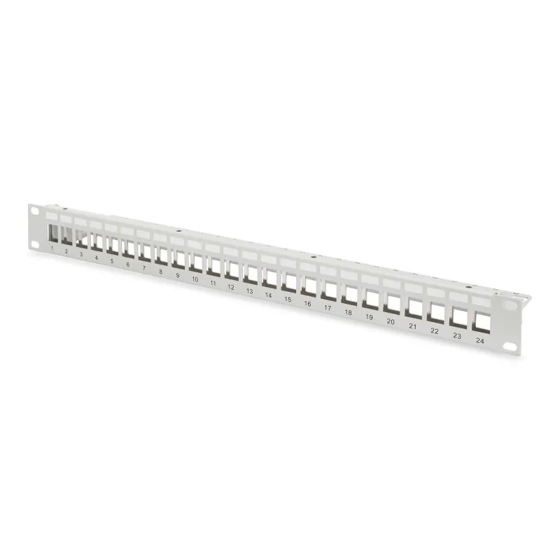 Patch panel pusty DIGITUS 19" 24 port 1U do modułów keystone (RAL 7035) Patch panel pusty DIGITUS 19" 24 port 1U do modułów keystone (RAL 7035) to szafa serwerowa rack. Zapewnia bezpieczne przechowywanie i organizację sprzętu sieciowego.