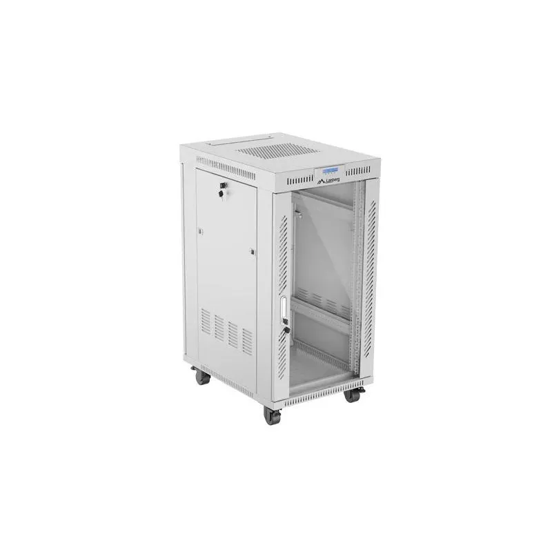 Szafa instalacyjna Rack stojąca 19" 22U 600x800 szara drzwi szklane Lanberg to szafa serwerowa rack. Zapewnia bezpieczne przechowywanie i organizację sprzętu sieciowego.