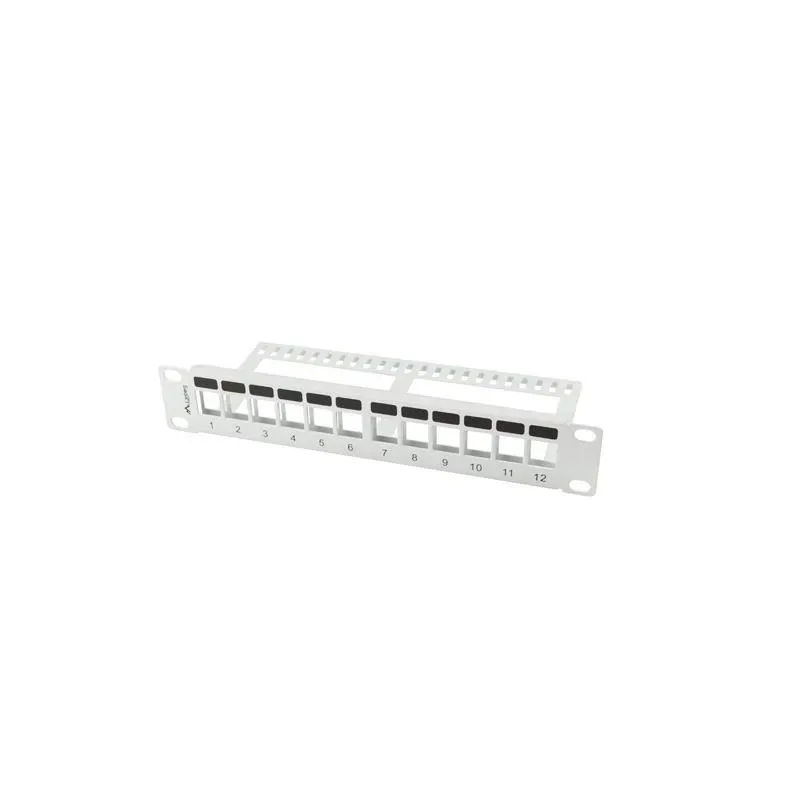 Patch panel pusty Lanberg 12 port 1U 10" z organizerem do modułów keystone Patch panel pusty Lanberg 12 port 1U 10" z organizerem do modułów keystone to szafa serwerowa rack. Zapewnia bezpieczne przechowywanie i organizację sprzętu sieciowego.