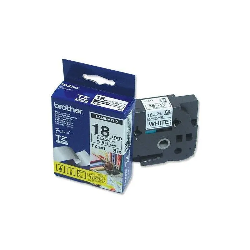 Taśma Brother P-Touch TZe-241 18mm x 8m (TZE241) - biała, czarny nadruk to tasiemka do drukarki. Materiał eksploatacyjny do drukarek igłowych i etykiet.