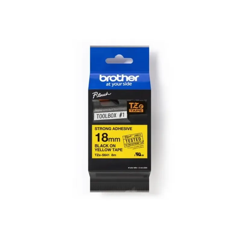 Taśma Brother P-Touch TZe-S641 18mm x 8m (TZES641) - żółta, czarny nadruk to tasiemka do drukarki. Materiał eksploatacyjny do drukarek igłowych i etykiet.