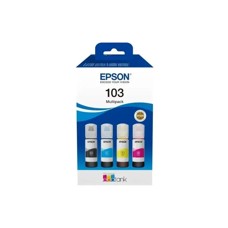 Tusz EPSON 103 EcoTank Multipack 4 kolory (4x65 ml) Tusz EPSON 103 EcoTank Multipack 4 kolory (4x65 ml) to tusz do drukarki Epson. Zapewnia trwałe i żywe wydruki w drukarkach Epson. 65.0 ml Pojemność (ml).