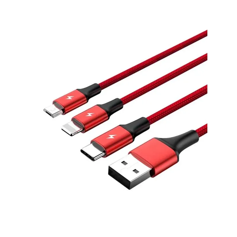 Typ kabla / urządzenia: Kabel sygnałowy i zasilający. Złącze 1: USB 2.0 Typu A (męskie). Złącze 2: Lightning 8pin (męskie), USB 2.0 Typu C (męskie), Micro USB 2.0 Typu A (męskie).