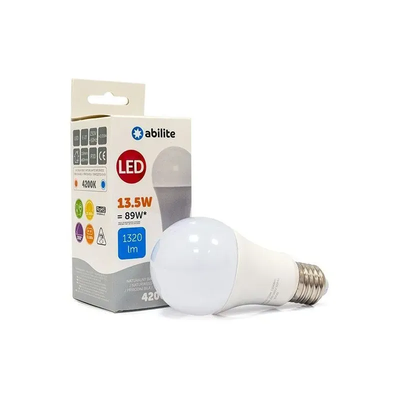 Żarówka LED Abilite klasyczna mleczna b.neutralna E27 13,5W/230V 1320lm A60 to żarówka LED. Energooszczędne źródło światła.