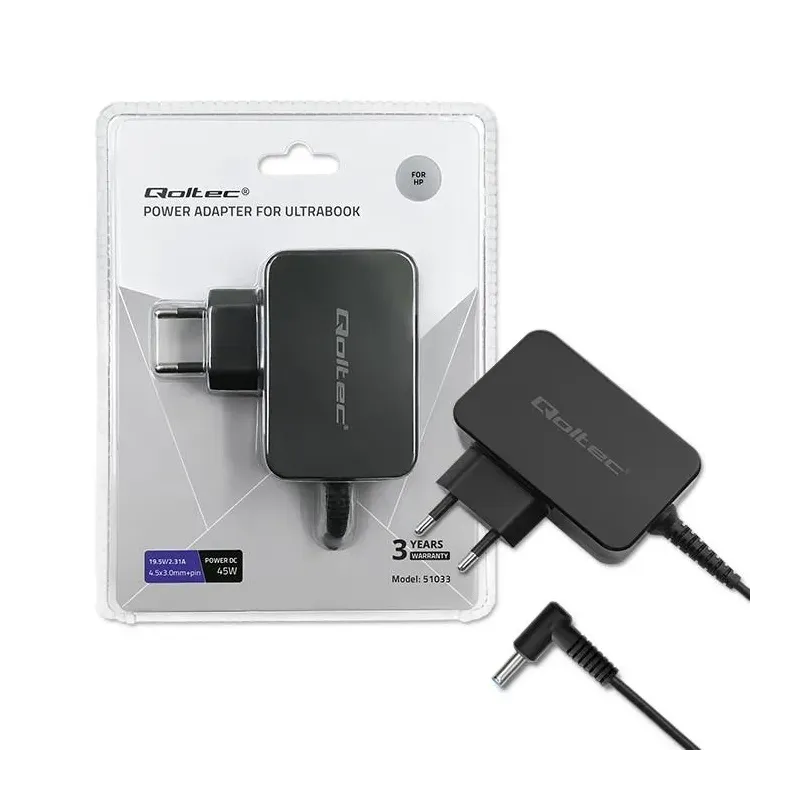 Zasilacz sieciowy Qoltec do ultrabooka HP 45W | 19.5V | 2.31A | 4.5*3.0+pin