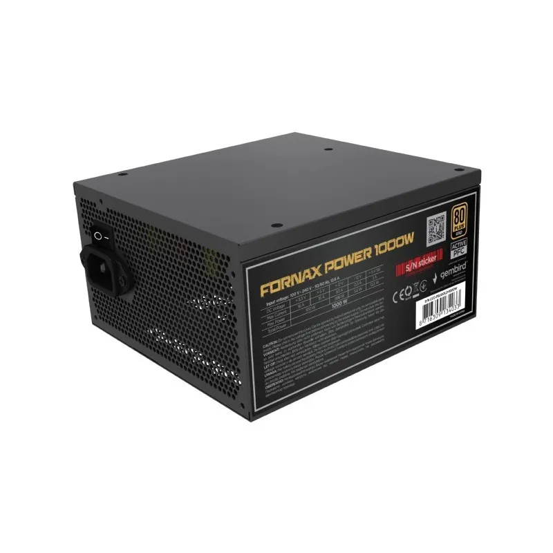 Gembird Zasilacz ATX o mocy 1000W aktywne PFC 12 cm fan 80+Gold to zasilacz komputerowy. Zapewnia stabilne zasilanie podzespołów komputera stacjonarnego.
