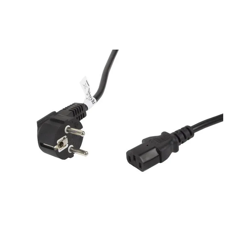 Typ kabla / urządzenia: Kabel zasilający. Złącze 1: Wtyczka elektryczna jednofazowa z uziemieniem CEE7/7 Schuko kątowa. Złącze 2: Złącze IEC zgodne z IEC 60320-C13 proste.