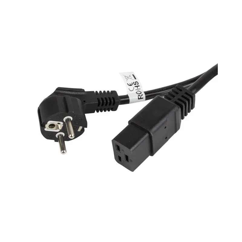 Typ kabla / urządzenia: Kabel zasilający. Złącze 1: Wtyczka elektryczna jednofazowa z uziemieniem CEE7/7 Schuko kątowa. Złącze 2: Złącze IEC zgodne z IEC 60320-C19 proste.