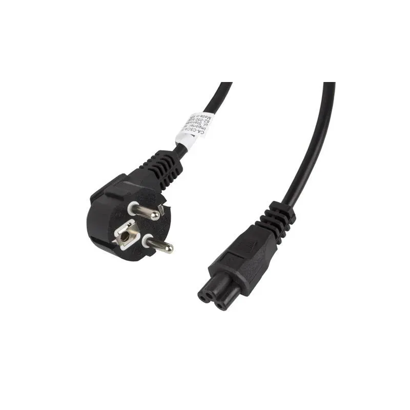 Kabel zasilający Lanberg CEE 7/7 - IEC 320 C5 notebook (miki) 3m VDE czarny to kabel zasilający o długości 3.00 m. Zapewnia zasilanie urządzeń elektronicznych.