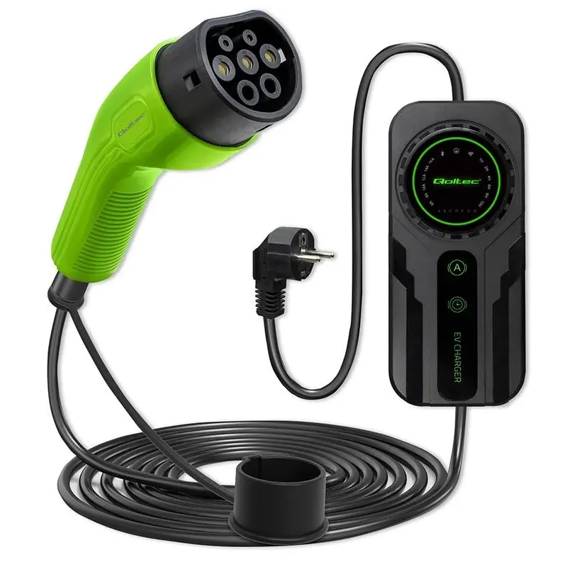 Ładowarka Qoltec do samochodu elektrycznego EV z regulacją 2w1 typ2 | to ładowarka do samochodu elektrycznego o długości 5.00 m. Umożliwia ładowanie pojazdów elektrycznych w domu lub firmie.
