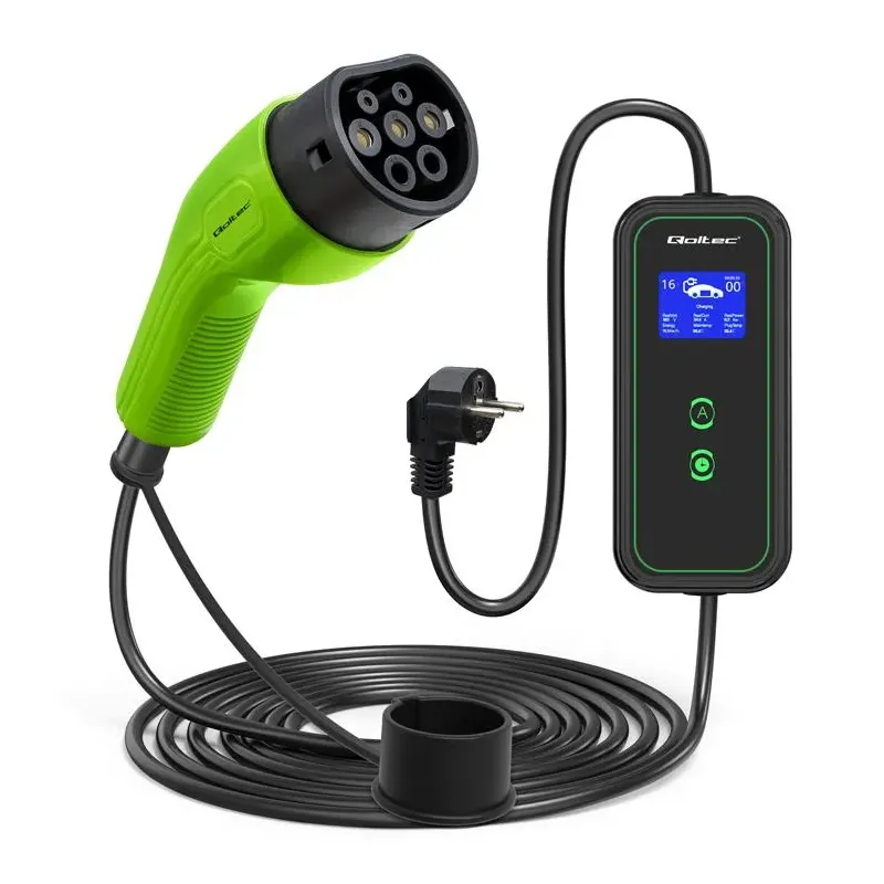 Ładowarka Qoltec do samochodu elektrycznego EV 2 w 1 typ2 | 3.5kW | 230V to ładowarka do samochodu elektrycznego o długości 5.00 m. Umożliwia ładowanie pojazdów elektrycznych w domu lub firmie.