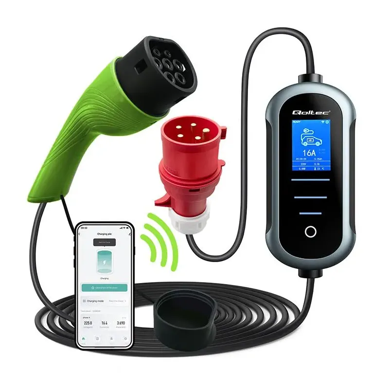Ładowarka Qoltec do samochodu elektrycznego EV z regulacją 2w1 typ2 | 11kW to ładowarka do samochodu elektrycznego o długości 5.00 m. Umożliwia ładowanie pojazdów elektrycznych w domu lub firmie.