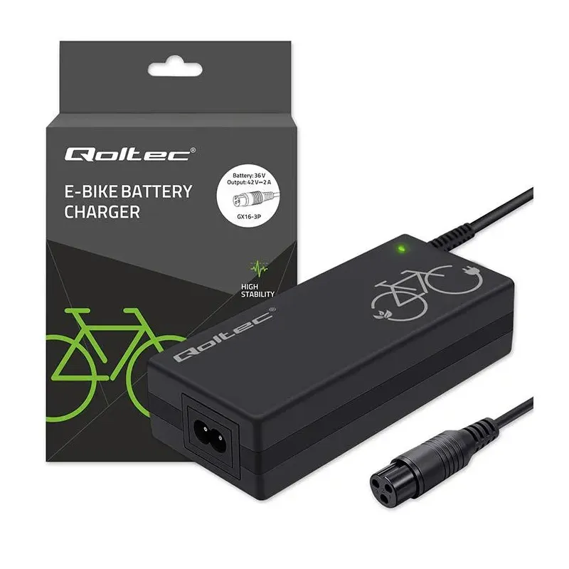Ładowarka Qoltec do roweru elektrycznego 36V | 42V | 2A | 3P-GX16 +kabel