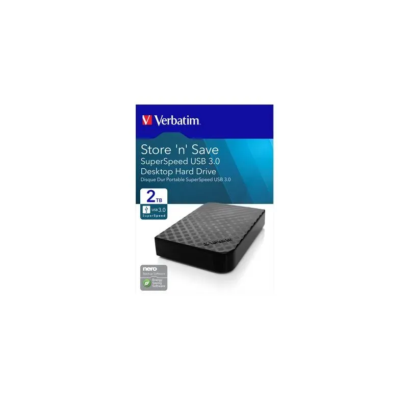 Dysk zewnętrzny Verbatim 2TB 3.5" Store 'n' Save 2Gen czarny USB 3.0 to dysk zewnętrzny HDD o pojemności 2 TB. Umożliwia przenoszenie i archiwizację danych.